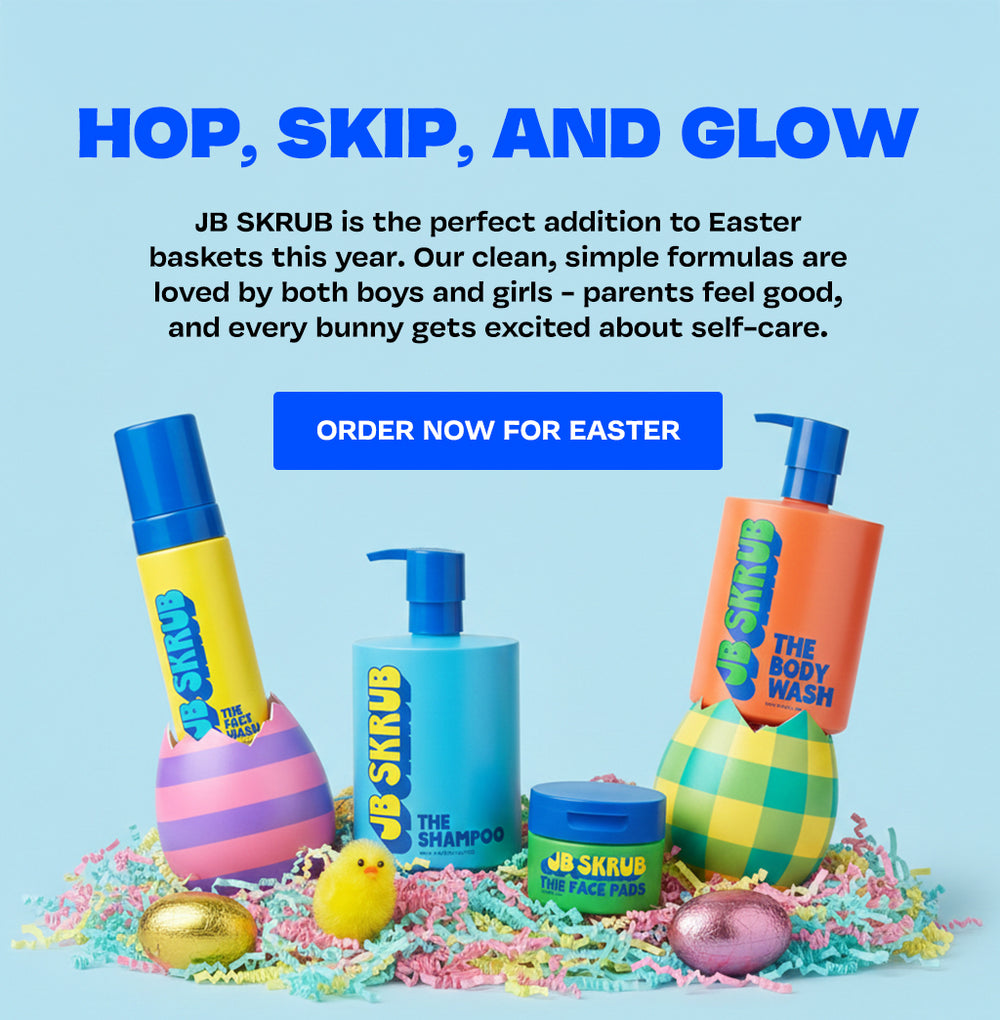 They are growing and so are their skincare needs. Make sure to put JB SKRUB body wash in the shower and our face care products on the sink.